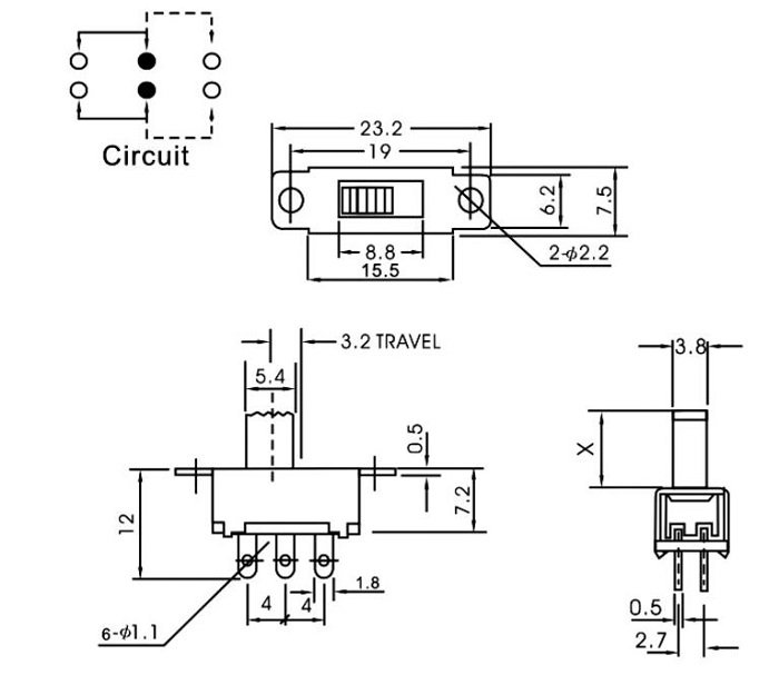 ANAHTAR SÜRGÜLÜ 3 Pin SS12F21 90 ° ON ~ ON Minik İğne Pin Ayak Kulaksız IC-206