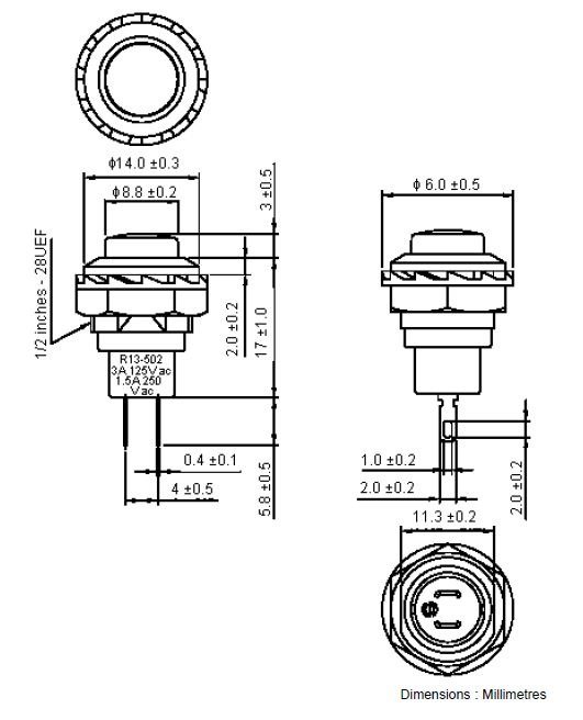 Buton Kırmızı Yuvarlak 16mm Ø R13-507 / IC-180A ( Yaylı Tip )