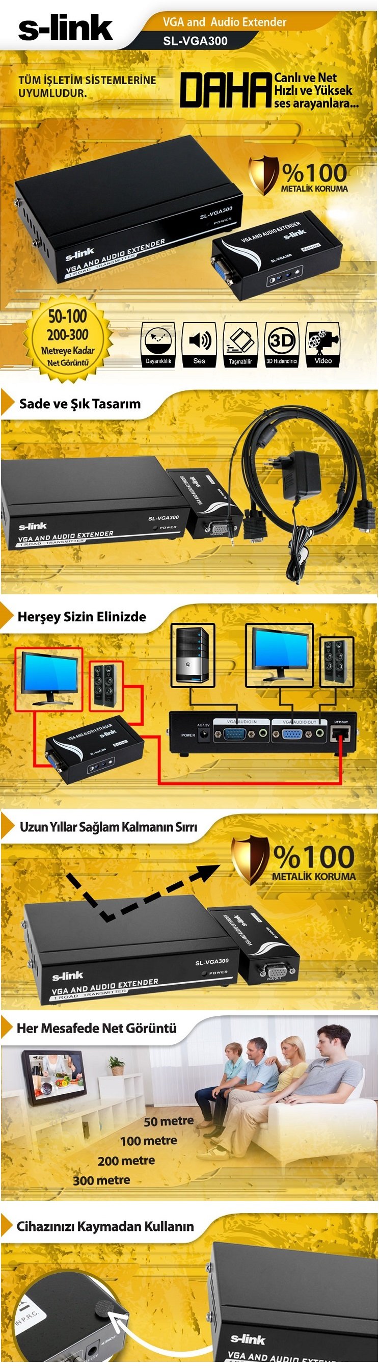 S-Link SL-VGA300 VGA Extender 1902x1200 Resolution 300mt With audio BY on CAT5-CAT6
